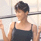 髪もアップにしているので、一層顔の小ささが目立つ。7分丈のワンピースをきれい