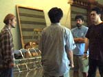 この日撮影が行われたのは、ダンスパーティーのシーン。監督からレクチャーを受けるYUKINARI、KEN、SHINOBU。その場でダンスを考えるところは、さすがです!