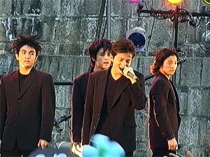この曲を歌っているのを見るのは、みんな初めてだから大喜び。とてもノリのいい曲であるのに加え、激しい技アリのダンスの連発に会場はもう…言葉で表現できないほど熱くなっていたのでした。