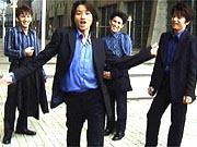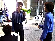 監督用のメガホンを奪って遊び始めるISSA。馬が走る音、暴走族が走り抜ける音の真似がうまいISSA