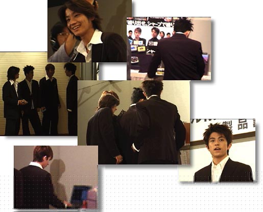 〜おまけ〜 会場の定期点検が途中で入ったたり、写真撮影の後なども少し時間が空いたため、ちょっぴりDA PUMPの素顔をのぞくことができました。 ちょっとの時間だったのですが、ISSAくんははじっこにあったパソコンが気になっていたり、KENくんは新商品のMDをいじってみたり、SHINOBUくんとYUKINARIくんは、SHARPの方に声をかけられ少しなれない様子で答えてたり、テレビやイベントの時より少しだけやんちゃな面が見れました。