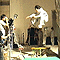 すると、おや? なにやらばらばらと急いでスタジオの中央部分から撤退している…(「…かなり暑い!」と、声に出さず口を動かすYUKINARI)。床から強力なライトを当てているために、舞台がかなり暑いらしい。