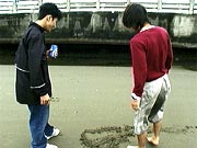 砂にサインを書き始める2人。このサインを偶然見かけた人はすごいラッキー