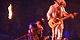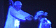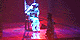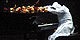 右の写真をクリックしてください。拡大写真を見ることができます。 3月10日、幕張メッセイベントホールでスタートした'99年のglobe全国ツアー「globe tour 1999 Relation」が、5月25日、国立代々木競技場第一体育館で幕を閉じた。アリーナ席中央までせり出し四角い穴が4つあいた、今までのglobeのライヴとは比べようもないほどシンプルなステージ。どんなライヴを見せてくれるのだろうか? 定時を少し回ったところで、客席のライトが落ち、ホラー映画のオープニングのようなBGMが流れてきた。オープニングは『DEPARTURES』。冬の曲らしく雪が舞い降りて、きてその雪がステージ上に消えていく様子は、夏が近づいてきていることを忘れてしまうほどリアルだ。そして、なんといきなり2曲目は、いつもライヴで一番の盛り上がりを見せる『SWEET PAIN』。まだ2曲目だというのに会場はかなりの盛り上がりだ。しかし…この後会場の誰もが予想していなかったことが起こったのだ。MARCのラップの途中で突然会場が真っ暗になり、演奏もストップ。静まり返った暗闇の中3人の名前を呼ぶ声だけが広い会場にこだまする。真っ暗闇の中に紫ライトがあたり、テーブルで身動き一つせずに何かを考え込むKEIKOの姿が浮かび上がった。 『自分が生活しているこの世界がホントに現実なのかなってよく考えますね。夜寝る時、ベットに入ってやっぱり考えちゃうんですよね。でも知らない間に寝ているんですよね。そんな風に寝ている時はきまって怖い夢を見ますね。』 テーブルの上のドリンクを飲み干し、ガラスの割れる音とともに倒れるKEIKO。暗い闇の中からだんだん恐怖が迫てっくるかの様に、徐々に早まっていくBGM。ここから誰もが想像していたステージとは全く違うステージが展開されたのだった。 いつもよりもダークな雰囲気の照明で始まった『letting out a deep breath』は、今考えるとこれから展開されるステージのプロローグに過ぎなかった。白い布を頭から被ってKEIKOが歌い始めたのは、『across the street,cross the water』。KEIKO同様に頭から白い布を被った物体が両サイドから歩いてきた。立ち止まった後全く動かないその物体の白い布をMARCがはぎ取っていく。出てきたのはなんとマネキン。そのマネキンがまた普通のマネキンではなく、体中が赤い斑点で覆われている宇宙人の様なマネキンだったのだ。続く『sweet heart』では、MARCがそのマネキンを蹴ったり投げたりしながらステージ中央の穴の中に落としていったりと、バイオレンス色が濃いステージが繰り広げられたのだった。 恐怖をあおる様に近未来的な低音を奏でたTKの電子オルガンソロの後は、『FACES PLACES』。何故か首にロープをつながれ状態で現れたMARC。動きまわろうとするがロープでつながれているので思うように身動きがとれない。自分の状況を嘆きながらも救いを求めるMARC。目の前にいるTKにも助けを求めるがTKは見て見ない振りで演奏を続けていく。ラップを熱唱している途中でとうとうそのロープは巻き上げられ、MARCは体は宙に。全く身動きをしないMARC。まるで公開死刑に立ち合っているかのようだ。 そして、脈が打つようなBGMに合わせて聞こえてきたMARCの声。 『怖い夢っていえば何回も追いかけられたりとか化け物がでたりとかいう夢なんだけど、自分が死ぬ夢や殺される夢って怖いですよね。後ろからナイフで刺されて血がどばーっとか出て、刺した相手の顔を見るとそれがまた自分だったりして。それで次の瞬間刺した自分が死体になってすごい後悔していて。汗びっしょりでがばっと起きる、そんなことってありますよね。』 『MISS YOUR BODY』に続き、『Anytime smokin' cigarette』では爆発音と共に一番手前の穴からすごい勢いで火柱があがり、それと同時に会場中から悲鳴が上がった。『like a snowy kiss』に続いては、白いコードを羽織り頭からフードをすっぽり被ったTKのピアノソロ。途中で力尽きたかのように全く動かないTKの頭上に、花葬を連想させるかのように色とりどりの花が舞い落ちてきた。そして『creamy day』。黒猫の目が映し出されたステージで、真っ白なドレスを着たKEIKOがステージ中央に設置されたスクリーンに囲まれ、回転しながら歌っていた。歌ってはいるものの全く動かず人形のようである。スクリーンがさがり、外にでてきて熱唱するKEIKOの真っ白なドレスに赤い点が浮かび上がる。それは見る見る間に大きくなって流れ出しドレスが赤く染まっていった。歌い終わったKEIKOは上半身たらんと前に倒したまま、ステージは暗闇に包まれた。 『I'm bad』のイントロが流れ始めると同時に骸骨が映し出され、そして電気イスに座らされたMARCと黒いコートを来たTKがステージに現れた。MARCの座っている椅子に電流が流れ煙があがる。フラフラになりながら力をふりしぼって歌うMARCだったが、十字架の形をしたオルガンの音色を聞きながらステージ上の穴に落ちてしまったのだった。 | TOP | NEXT | |