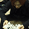 作曲に励むyou。意気込みを語ってくれました。ちなみに手に持っている携帯電話はマイクのつもりだそう。「ODENねぇ〜、途中で一音はずしたのがわかったから、途中で方向転換したんですよね。そうしたらあんな事になってしまったという…僕にも予想がつかなかった。多分ね、周波数を変えた方も多いと思うのですが…今日もまた、どんな曲が生まれるかわからないですけど、がんばってきます」
