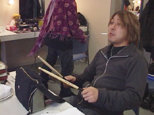 仕方なくスネアのかわりにカバンを叩くshuji。