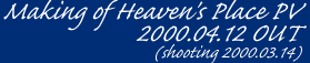 ka-yu画伯。ティッシュペーパーの箱に作品を制作中。「昔は、まつもと泉の絵とかうまく書けたんや」とのこと。撮影は深夜まだ続き、それぞれソロのショットを撮って終了。と思ったら、屋上で撮影できなかったka-yuとkiyoのソロショットが残っていたのです。合成で撮影されるのかと思っていたのですが、照明さんの腕によりライティングで青空を再現。モニターでみると、え?スタジオなの?と思うほど。できあがったPVを見ても、どっちがスタジオで撮影されたものか分からないはず。見比べてみてはいかがでしょう。 そして、メンバーの撮影が終わったのはAM5:00。撮影スタッフはこの後、合成用に動物や昆虫を撮影していました。 いままでのなかで一番長時間の撮影となった『Heaven's Place』プロモーションビデオ。爽やかです。放送コードぎりぎりのトークをするようなバンドには見えません(笑)。このPVはテレビ東京系『ASAYAN』のエンディングや、ANB『完売劇場』(毎土25:55〜26:05)などでも流れるので要チェック! [ BACK ] |