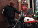 さて、取材は前回同様、下高井戸駅から徒歩10分のバイクショップ『BOATRAP』。お店に入ると、愛車バルカンがお出迎え。約1ヶ月ぶりの再会ということと、微妙に変化していく様を確認するようにバイクのまわりを一周しながら、じっくりとながめるka-yu。そして、どこをどう改造しているのかをお店の人に解説してもらいます。