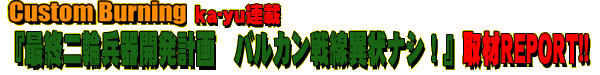 「カスタムバーニング」で大好評連載中の『最終二輪兵器開発計画 バルカン戦線異状ナシ!』。ka-yuファンなら愛読書となっていることだろうが、今回も取材に立ち会わせてもらっちゃいました。
