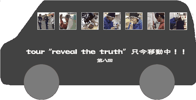 とうとう最終回!最終回は、このなが〜いツアーでメンバーがなぜ、ぷくぷくぷくぷくしていったかがわかる決定的瞬間の写真ばかりです(笑)。よくよく見ていくと、サービスエリアに入るたびになにか食べてるんですね〜。3枚目はkiyoが食べてるところをみんなで取り囲んでいぢめてる(笑)所。「うまいか。そうかうまいのか。それが、kiyoの血となり肉となり、やがては脂になるんや」