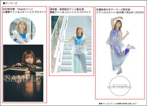 初回生産限定盤:56㎜⽸バッジ+複製サイン&コメント⼊りL判ブロマイド