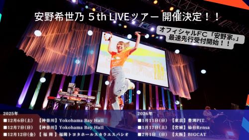 12月より開催する『安野希世乃 5th LIVE ツアー (仮)』の「安野家。」最速先行受付が、
