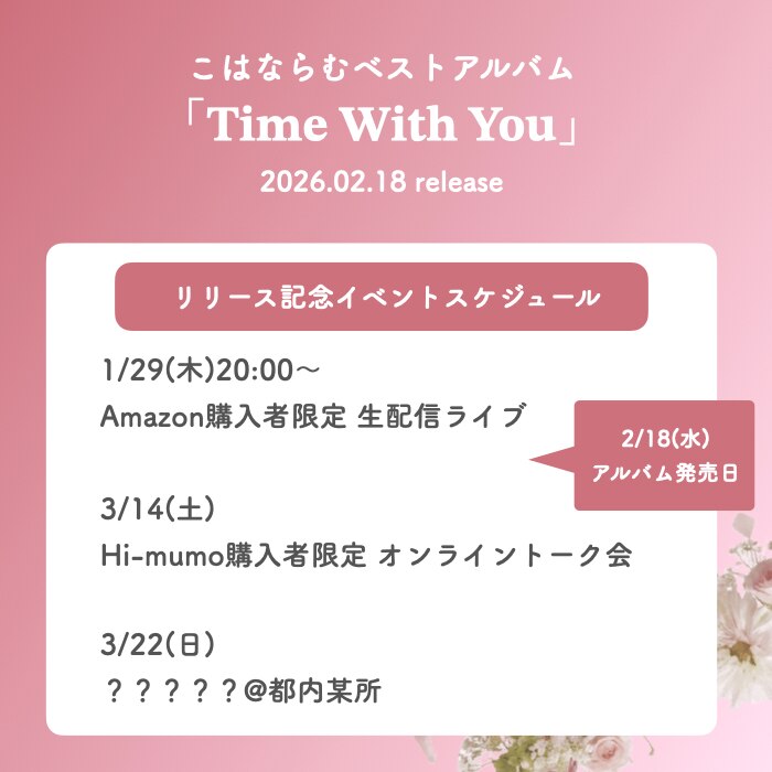 リリースを記念したイベントや特典会も多数準備しておりますので、ぜひこはならむの楽曲と共にお楽しみください。