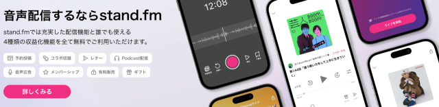 録音やラジオ感覚の「stand.fm」「Spoon」など