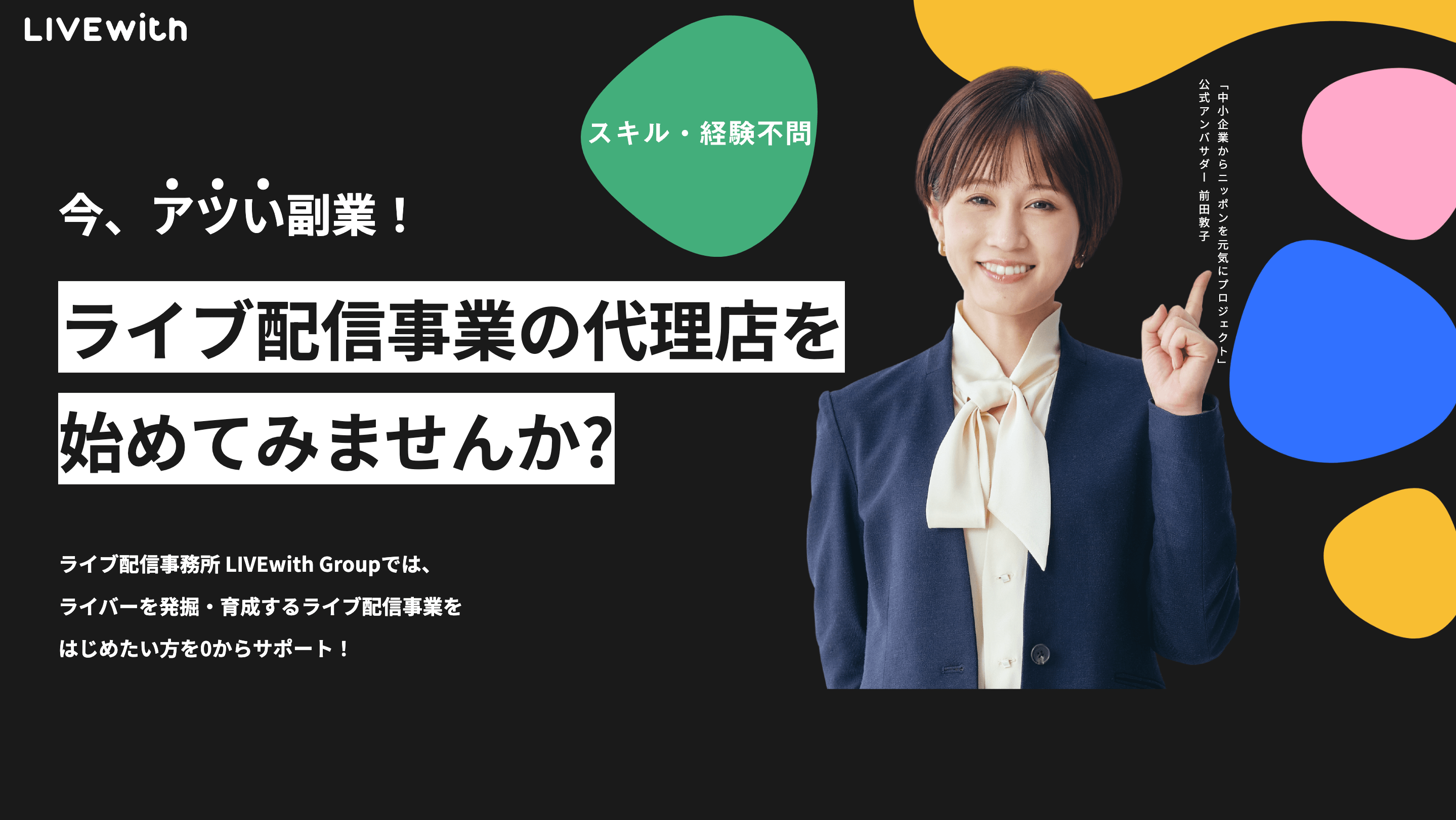 LIVEwithで募集している代理店は、時間制約やノルマを設けておらず、副業として代理店運営をはじめたい方におすすめです。初心者でもはじめやすく、担当者がつくのでわからないことがあれば相談できます。