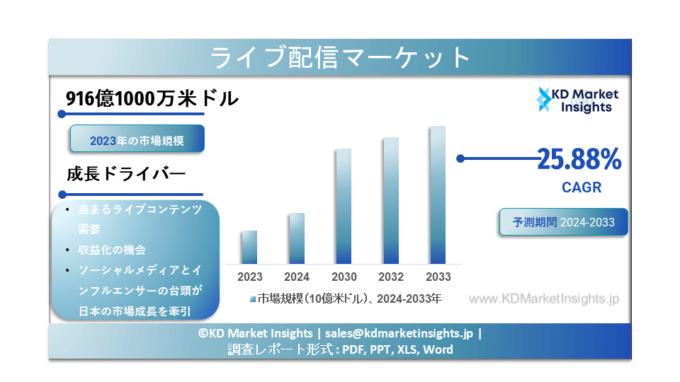 引用:ライブ配信市場規模は2033年までに5,601億4,000万米ドルを創出 – 市場動向、シェア、機会予測