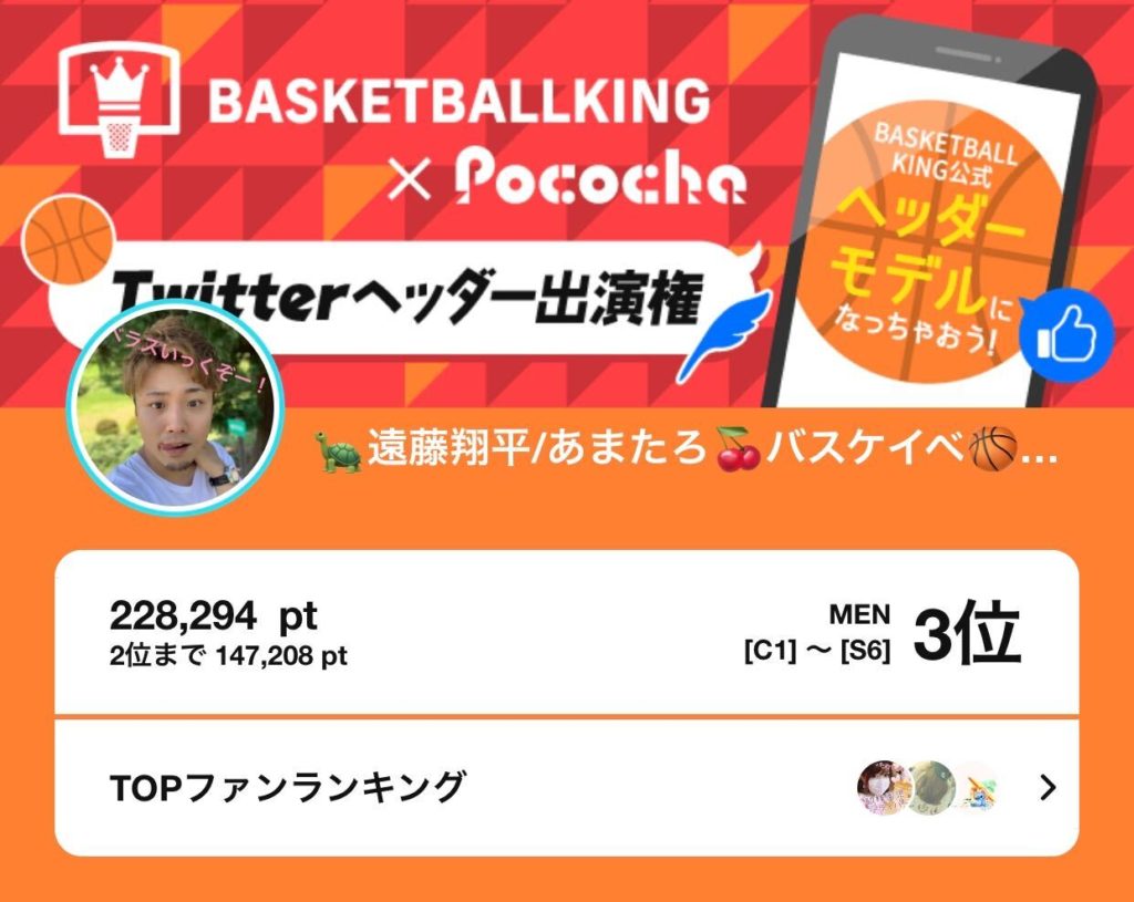 弊社所属ライバーのあまたろがPococha主催イベント「BASKETBALLKING × Pococha」C1~S6にて3位に入賞いたしました。
