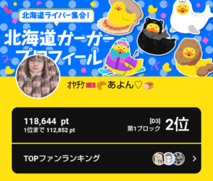 弊社所属ライバーのあよんがPococha主催イベント「北海道ライバー集合!北海道ガーガープロフィール」D3第1ブロックにて2位に入賞いたしました。