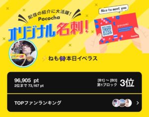 弊社所属ライバーのねもがPococha主催イベント「オリジナル名刺」B1~B3にて3位に入賞いたしました。