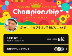 弊社所属ライバーのるぱんがPococha主催イベント「トップライバーチャンピオンシップ 〜2020.SUMMER〜」にて8位に入賞いたしました。