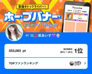 紫あいす、Pococha「ホープバナー」B1~A1にて1位入賞!