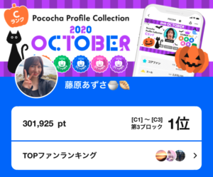弊社所属ライバーの藤原あずさがPococha主催イベント「Pococha Profile Collection 2020 October for C rank」C1~C3にて1位に入賞いたしました。