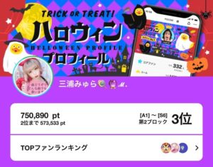 弊社所属ライバーの三浦みゅらがPococha主催イベント「Trick or Treat!ハロウィンプロフィール」A1~S6にて3位に入賞いたしました。