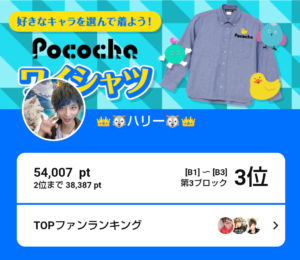 弊社所属ライバーのハリーがPococha主催イベント「好きなキャラを選んで着よう!Pococha ワイシャツ!」B1~B3の第3ブロックにて3位に入賞いたしました。