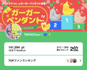 弊社所属ライバーのTAKAChuu☆がPococha主催イベント「クリスマスver.のガーガーペンダント登場!」C1~B3の第4ブロックにて2位に入賞いたしました。