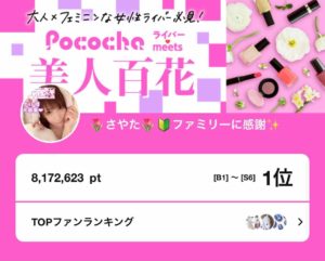 さやた、Pococha「Pocochaライバー meets『美人百花』」B1~S6にて1位入賞!