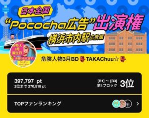 弊社所属ライバーのTAKAChuu☆がPococha主催イベント「日本全国 Pococha広告出演権 横浜市内駅広告編」B1~B3の第1ブロックにて3位に入賞いたしました。