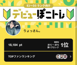 弊社所属ライバーのりょっさん。がPococha主催イベント「デビューぽこトレ」E1~D1の第1ブロックにて1位に入賞いたしました。