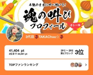 弊社所属ライバーのTAKAChuu☆がPococha主催イベント「本能のままに叫べ想いを!魂の叫びプロフィール カレー編」B1~B3の第2ブロックにて3位に入賞いたしました。