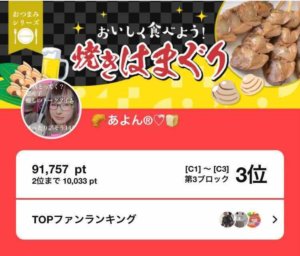 弊社所属ライバーのあよん♡がPococha主催イベント「おつまみシリーズ おいしく食べよう!焼きはまぐり」C1~C3の第3ブロックにて3位に入賞いたしました。