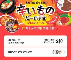 弊社所属ライバーのあよん♡がPococha主催イベント「あなたはどっち派?辛いものだ~いすき!辛党集まれ編」C1~C3の第2ブロックにて2位に入賞いたしました。