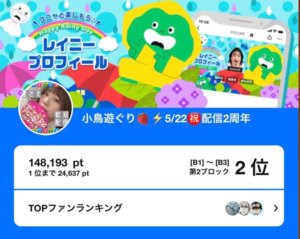 弊社所属ライバーの小鳥遊ぐりがPococha主催イベント「フニャと楽しもう♪Happy Rainy Day レイニープロフィール」B1~B3の第2ブロックにて2位に入賞いたしました。