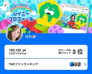 弊社所属ライバーのはわがPococha主催イベント「フニャと楽しもう♪Happy Rainy Day レイニープロフィール」C1~C3の第2ブロックにて3位に入賞いたしました。