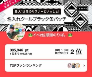弊社所属ライバーのりばがPococha主催イベント「最大15名のリスナーといっしょ!名入れクールブラック缶バッジ」B1~B3の第2ブロックにて2位入賞いたしました。