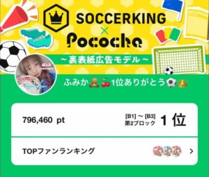 弊社所属ライバーのふみかがPococha主催イベント「SOCCER KING x Pococha ~裏表紙 広告モデル~」B1~B3の第2ブロックにて1位入賞いたしました。