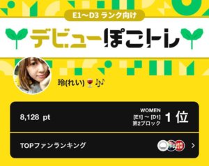弊社所属ライバーの玲(れい)がPococha主催イベント「デビューぽこトレ~」E1~D1の第2ブロックにて1位入賞いたしました。