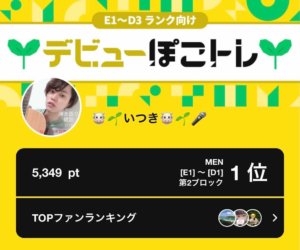 いつき、Pococha「デビューぽこトレ」E1~D1の第2ブロックにて1位入賞!