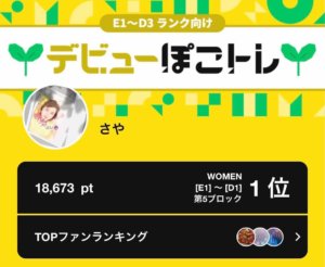 弊社所属ライバーのさやがPococha主催イベント「デビューぽこトレ」E1~D1の第5ブロックにて1位入賞いたしました。