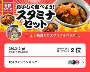 小鳥遊ぐり、Pococha「季節シリーズ おいしく食べよう!スタミナセット」B1~B3の第1ブロックにて2位入賞!