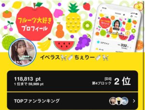 ちぇりー、Pococha「フルーツ大好きプロフィール」D3の第4ブロックにて2位入賞!