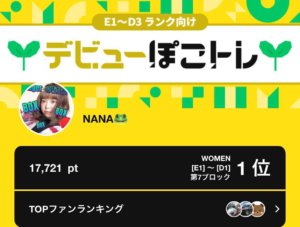 弊社所属ライバーのNANAがPococha主催イベント「デビューぽこトレ」 E1~D1の第7ブロックにて1位入賞いたしました。