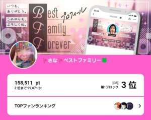 弊社所属ライバーのさながPococha主催イベント「BFF best family forever プロフィール」 D3の第1ブロックにて3位入賞いたしました。