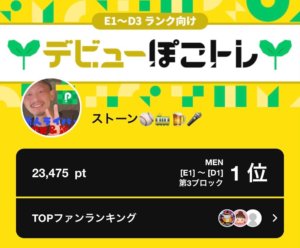 弊社所属ライバーのストーンがPococha主催イベント「デビューぽこトレ」E1~D1の第3ブロックにて1位入賞いたしました。