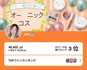 弊社所属ライバーのはわがPococha主催イベント「〜フルーツ由来の成分で素肌からみずみずしく〜オーガニックコスメ」C1~C3の第2ブロックにて3位入賞いたしました。