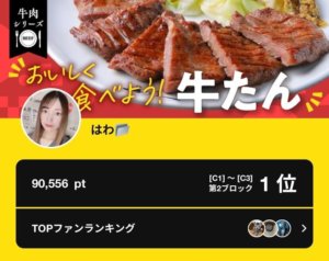 弊社所属ライバーのはわがPococha主催イベント「牛肉シリーズ おいしく食べよう!牛たん」C1~C3の第2ブロックにて1位入賞いたしました。