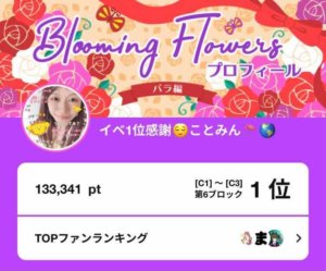 弊社所属ライバーのことみんがPococha主催イベント「Blooming Flowersプロフィール バラ編」C1~C3の第6ブロックにて1位入賞いたしました。
